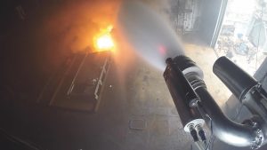 Unlike fixed spray systems that indiscriminately soak large areas, FlameRanger intelligently directs a powerful, high-volume stream of water or foam (typically 1250+ LPM) directly at and around the source of the fire. Once the fire is extinguished, the system automatically shuts off to prevent water damage and reduce environmental impact. If the fire reignites or a hot spot flare up, FlameRanger will detect it and resume suppression without delay.